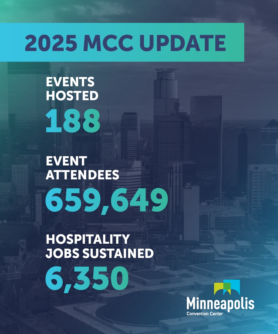 Whether you are planning a board meeting for 30, a shareholder meeting for 2,500 or a party for 10,000, the Minneapolis Convention Center is equipped with the amenities and services to ensure your event is successful. Between the 475,000 square feet of exhibit space and the 87 meeting rooms, you’ll find the Center’s award-winning Kelber Catering service and technical capabilities are second-to-none.