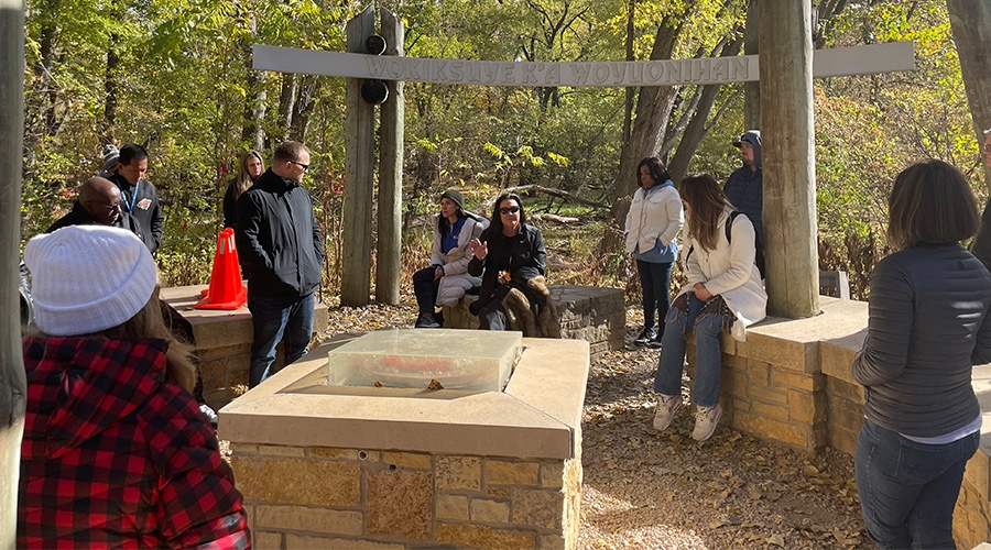 During the tour, Meet Minneapolis employees were encouraged to understand Indigenous perspectives not taught in Minnesota history books. They were asked to listen with an open heart as they heard from Ojibwe and Dakota community members talking about racism’s impact on generations of Indigenous people.