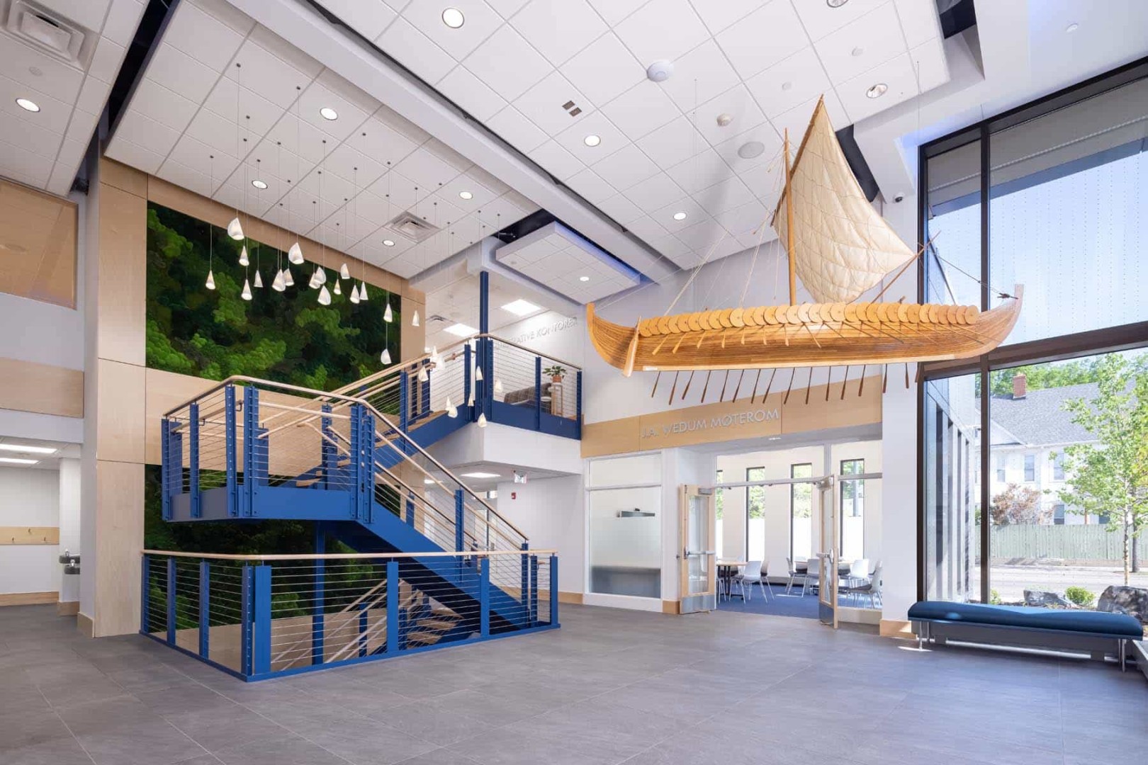 Gathering area adjacent to Sundet Aula and Wedum Room Ideal for mingling events, meet and greets and receptions. Accommodates up to 150 people for a casual, photo-ready indoor-outdoor experience.